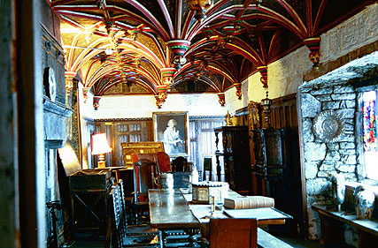 Bunratty Castle had a variety of owners over the centuries. In the twentieth century it was purchased by Lord and Lady something or other. The place was in terrible shape, so they fixed it up and retired there. When they died, they gave it to the government to open to the public. This library chamber was part of the refurbishing and remodeling they did. You couldn't go inside, unfortunately, but the ceiling was still amazing to see.
